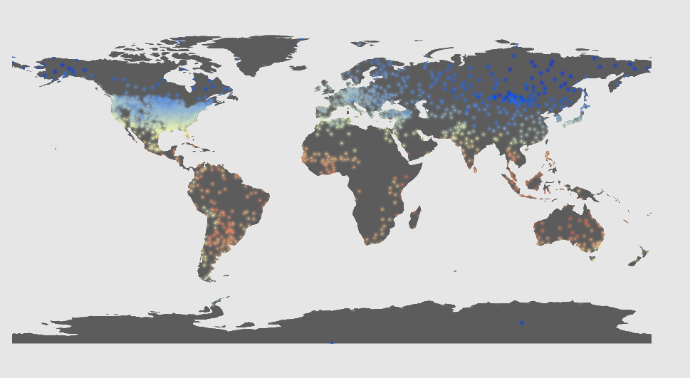 This project is an attempt create art from scientific data. We used more than 7,200 climate monitoring stations to draw a global temperature map for each month since 1900.